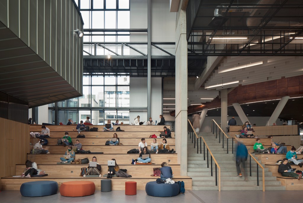 In higher education, social learning spaces have become increasingly important. There's a growing awareness of how the quality of the built environment impacts performance. Studies show that good daylight, views, and air quality significantly affect our performance. In the UK, even a slight change in national exam pass rates can cause a stir, so improving learning environments could lead to substantial improvements.