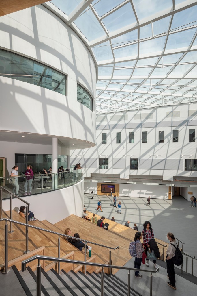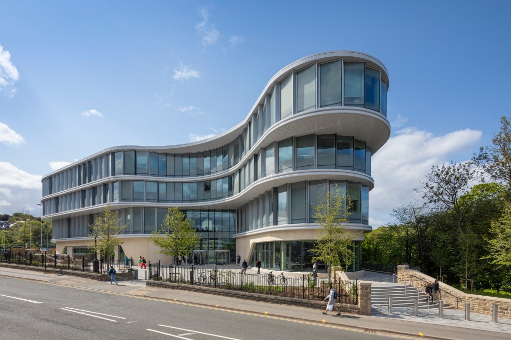 The Wave for The University of Sheffield is home to the Faculty of Social Sciences. The BREEAM Outstanding building opened in spring 2023. Image credit: HLM Architects