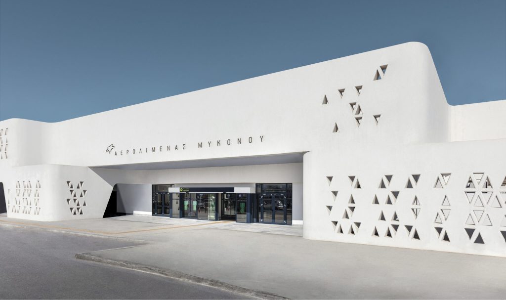 The studio was approached to design the facade of the regional airport in Mykonos. The new facade combined three buildings that were built in three different phases from the 80s up to now. It’s not often that a two-dimensional element tells the story of the building but by having a deep facade and creating a space between the buildings and the surface, a series of courtyards was accommodated for people to relax and take a little bit of sun. A place where travellers are still able to feel like they are in a local field rather than feeling enclosed, extending their dreamlike state of mind and staying connected to the town. It also acts as a retail space and there is an economic and a financial advantage as it makes revenue as well.