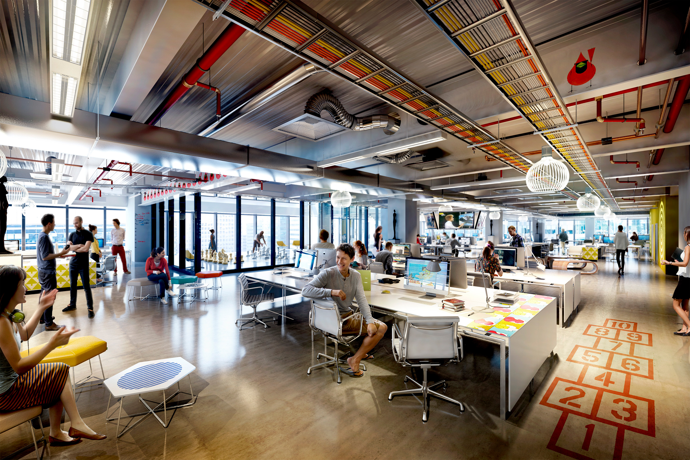 In an image created by Cityscape Digital in response to a client's brief, they showcased a London building which focused on highlighting key areas. The final image was a staggering display of light usage to capture the viewer’s attention in a flash. It shows an extremely brightly lit building entrance, automatically directing the viewers' gaze towards itself. The beaming entrance stands out as the brightest point in the composition, establishing it as the primary focal point. Furthermore, a secondary focal point is created, prompting the eyes to explore the entire image and perceive its spatial depth.